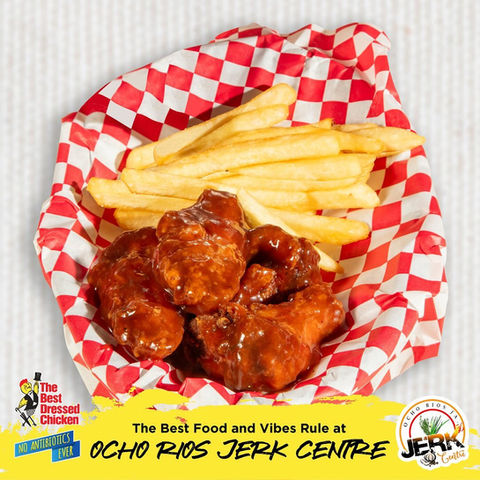 Succulent Jerk Pork, tender Jerk Chicken and our signature flavor packed Jerk Sausage.